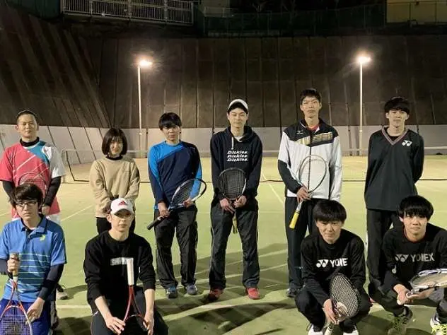 | 団体方針・モットー | みんなで楽しくやるソフトテニスサークルです。 技術の維持、向上を目標として活動しており1時間乱打、2時間半試合を行います。 中学までやってた人、高校までガッツリやってた人と幅広く在籍しています!来れば雰囲気を掴めると思うので是非1度足を運んでみてください! |
