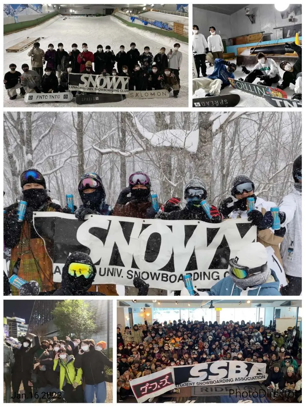 Snowyは全日本学生スノーボード協会(SSBA)に所属しています。毎年12月はSSBA主催、複数の大学と合同の合宿が行われます!間違いなく大学生活1番の思い出になるのでぜひ参加してください!