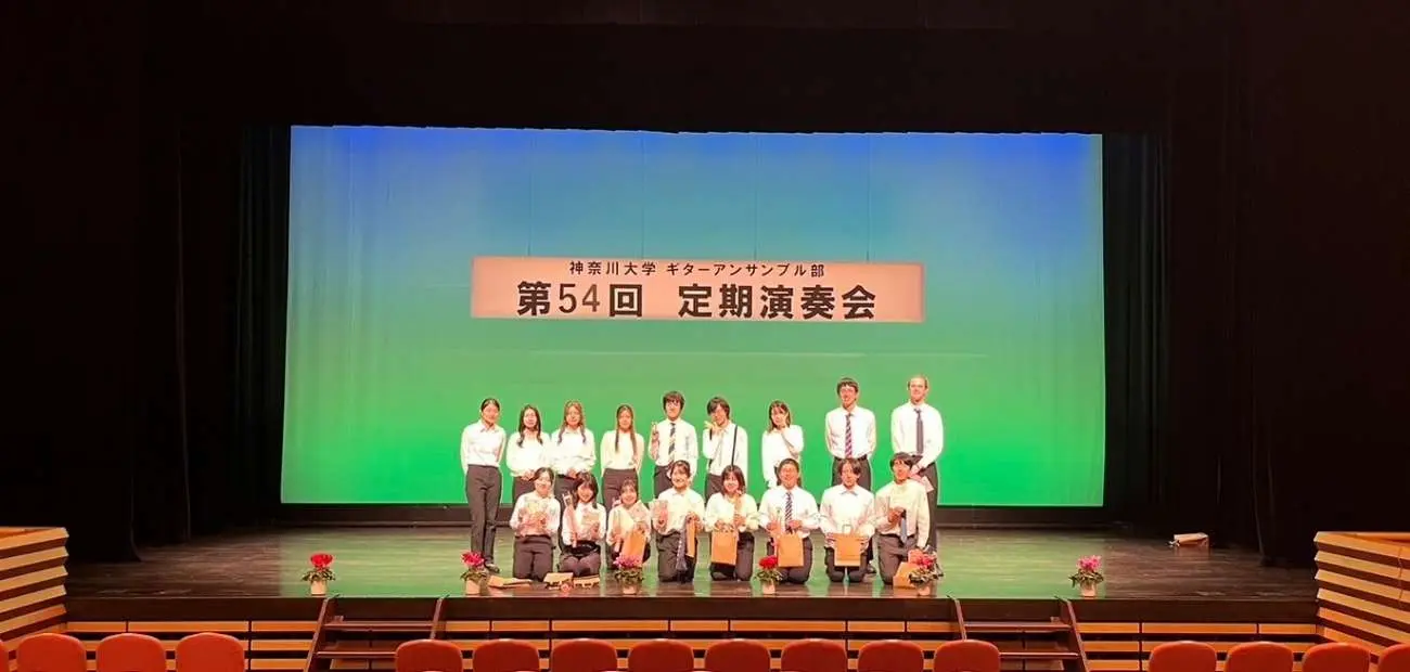 こんにちは!皆さん、ギターアンサンブルってご存知ですか? ギターアンサンブルとは、クラシックギターを使い、みんなでパートを分けて一緒に演奏するスタイルのことです。私たちの部活は少人数で、和気あいあいとした雰囲気の中、楽しく活動しています! 「なんだか難しそう…」と思うかもしれませんが、心配いりません。実は、ほとんどの部員が初心者から始めています。OBの講師の方に教えてもらいながら、少しずつ上達して、好きな曲が弾けるようになります!また、楽器をお持ちでない方もクラシックギターの貸し出しも行っていますので、安心してご参加ください。 これまでに定期演奏会やみなとみらい祭などでステージに立たせていただきました。新しいことをはじめてみたい方、ギターに興味がある方、音楽好きの方、ぜひお気軽にSNSからご連絡ください。私たちと一緒に音楽を楽しみましょう!お待ちしております!
