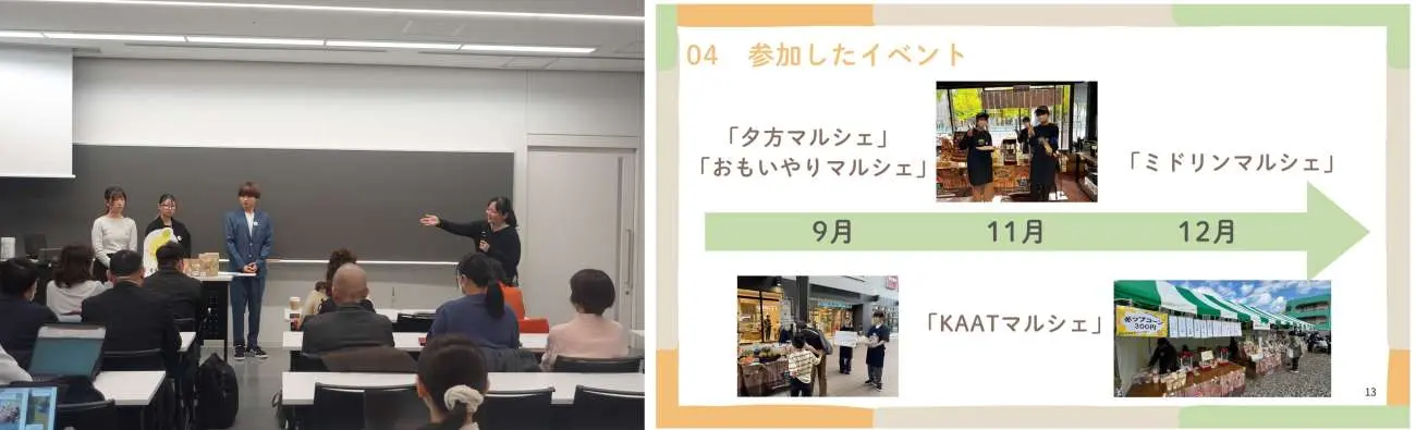 アドバンスコースの「ビジネス・地域課題コース」では、5月に連携先である企業・NPO・団体からテーマの説明が行われました。学生は7つのチームに分かれ、5月から12月にかけて、提示された課題やイベントについて、企画の立案から実施まで一連のプロセスに挑戦してきました。