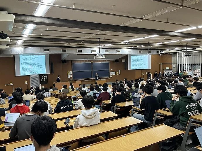 化学生命学概論I(1年次)が10-41講堂で開催されました。応用化学科・生命機能学科合同の科目です。