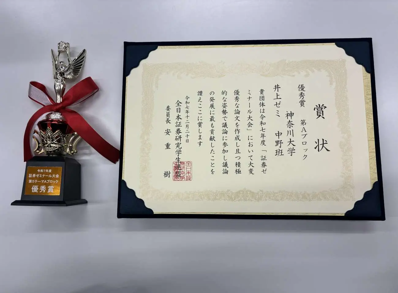 経済学部井上修ゼミナールが「2025年度証券ゼミナール大会」で優秀賞を受賞