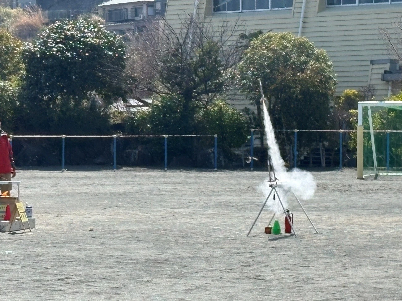 附属学校生徒が開発したペットボトルハイブリッドロケットの燃焼試験を宇宙ロケット部・高野研究室指導のもとに実施し、成功しました。