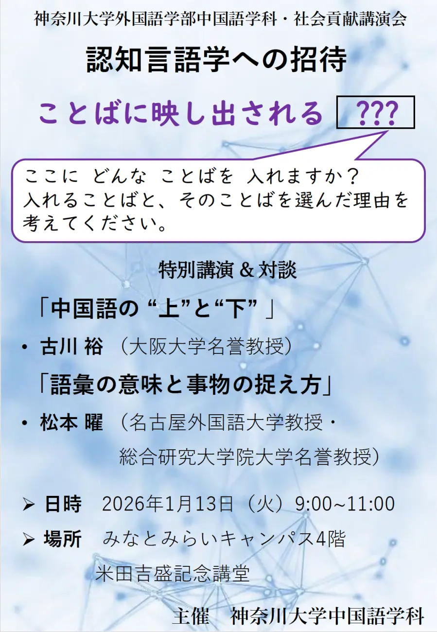 中国語学科2025年度 社会貢献講演会「認知言語学への招待」(2026年1月13日)