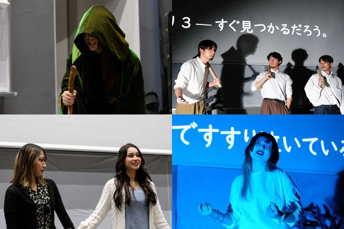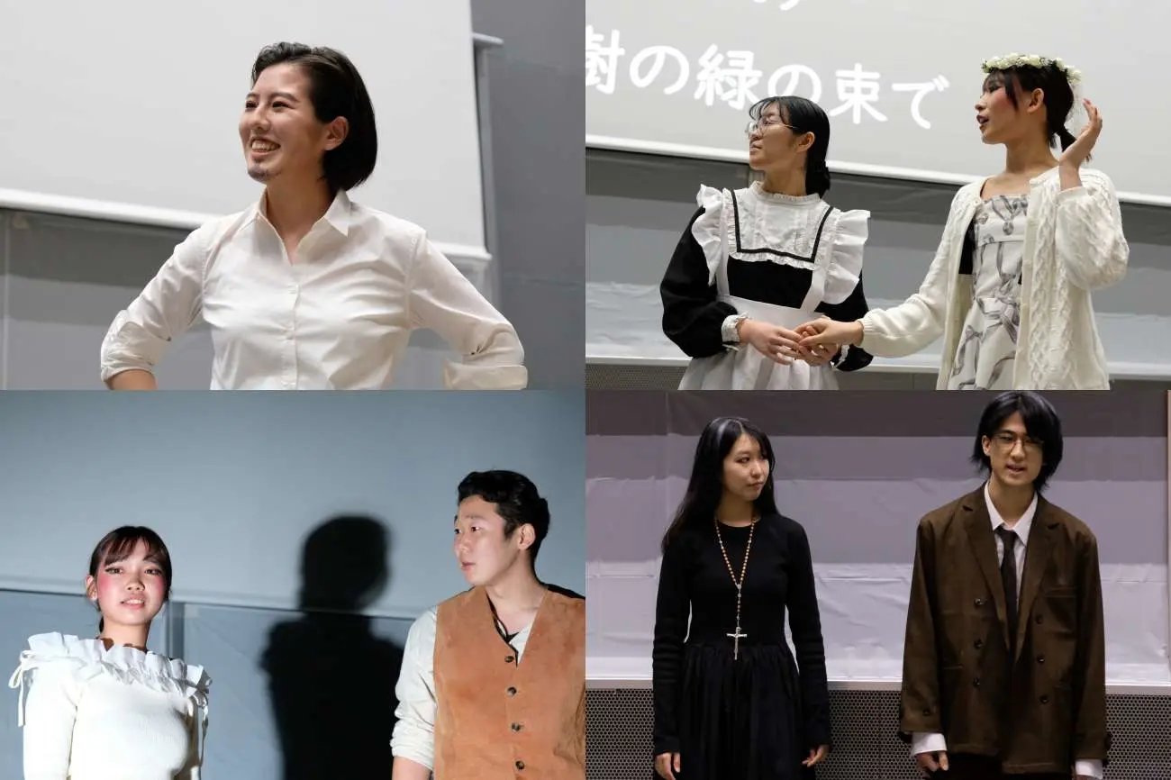 2025年12月16日火曜日、本学みなとみらいキャンパス・米田吉盛記念ホールにおいて、スペイン語学科の学生によるスペイン語劇が上演されました。本学科では、2005年の『ドン・キホーテ』より、隔年スペイン語劇の上演を続けています。本年度はまさに節目となる20周年でした。今年度取り上げた作品は、スペインを代表する詩人・劇作家ガルシア・ロルカ作『Bodas de sangre(邦題:血の婚礼)』です。当日は学内外より200名近い方々にご来場いただき、盛会のうちに幕を閉じました。出演した学生たちは、約1年前から役ごとの練習や通し稽古を重ね、着実に準備を進めてきました。後期に入ると、舞台美術、字幕、メイク、メディア担当の学生たちも加わり、互いに連携しながら完成度の高い舞台を創り上げました。今回は、みなとみらいキャンパス移転後、初の学内での上演ということもあり、多くの学生が客席から作品を鑑賞しました。中には、現在本学で学ぶスペイン語圏からの留学生の姿も多数見られました。語劇に参加した学生たちがスペイン語の台詞を操り、堂々と舞台に立つ姿は、スペイン語学科の学生たちにとって今後の学びへの意欲を新たにする貴重な機会になりました。
