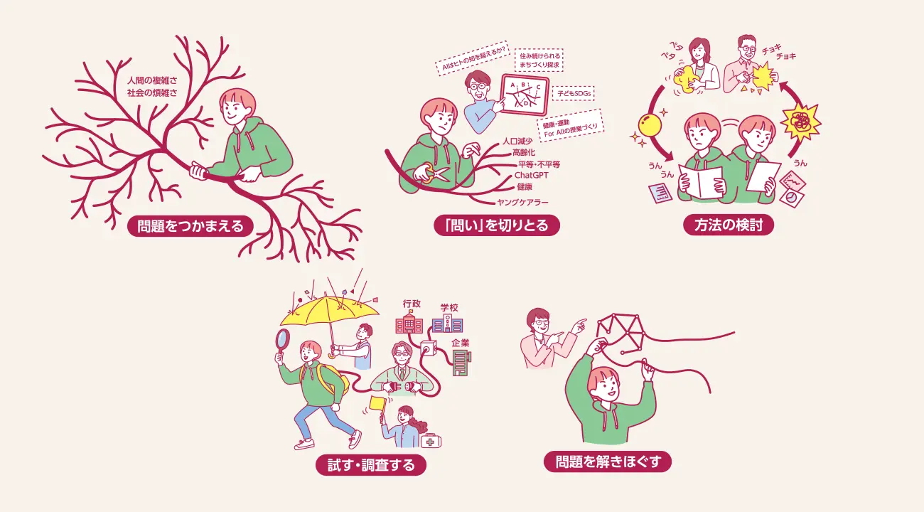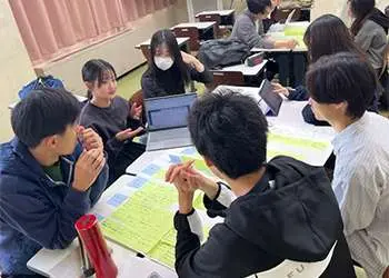 「探究学修」とは、学生自らが課題を設定し、課題の解決に向けて必要な情報を収集・整理・分析し、他者と意見交換・協働しながら進める学びです。