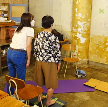 団地をフィールドに、高齢者の身体機能測定を実施します。測定に先立って、生活状況や転倒履歴に関する事前アンケートを行い、実測データとともに評価します。学生は、説明・記録・測定を分担しながら、姿勢やバランスに関するデータを収集します。