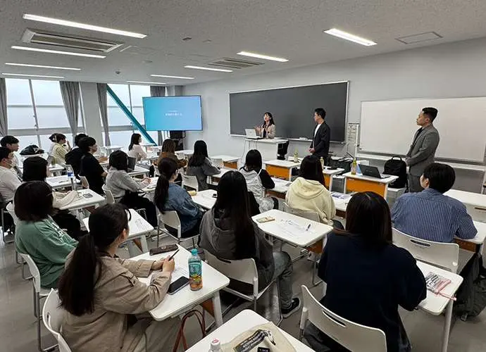 例えば、メディカル・ケア・サービス株式会社(以下、MCS)は、「認知症を取り巻くあらゆる社会環境を変革する」という企業ミッションに掲げた介護・福祉分野など多様なサービスを展開した企業です。MCS担当者による講義のほか、学生が主体となったワークショップを行いました。「支援の在り方」をテーマとしたグループディスカッションで学びを深める取り組みが実現しました。
