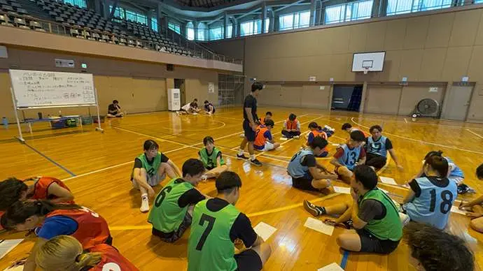 教育実習を控えた3年生が体育授業を計画し、交代で実践するほか、2年生や4年生も参画し、生徒役や授業省察を行うなど、学年を超えて学び合う場となっています。