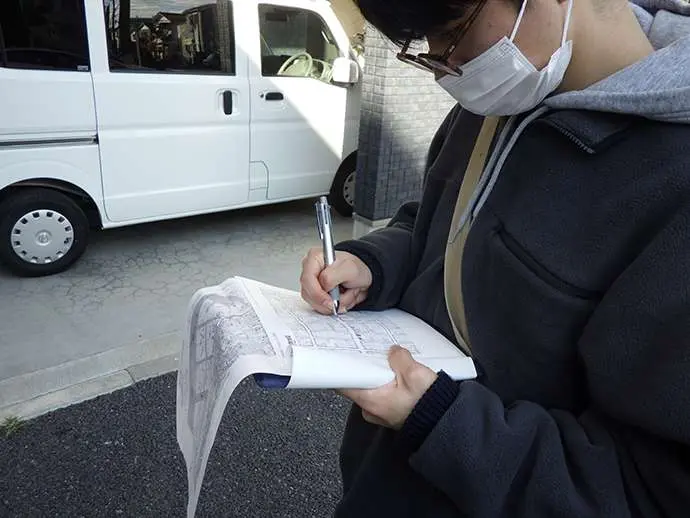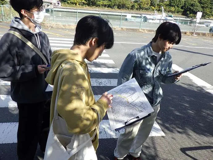 人間社会コースには、地域調査の実践として地図を持って街を歩く、観察する、記録する、というフィールドワークを行う科目があります。