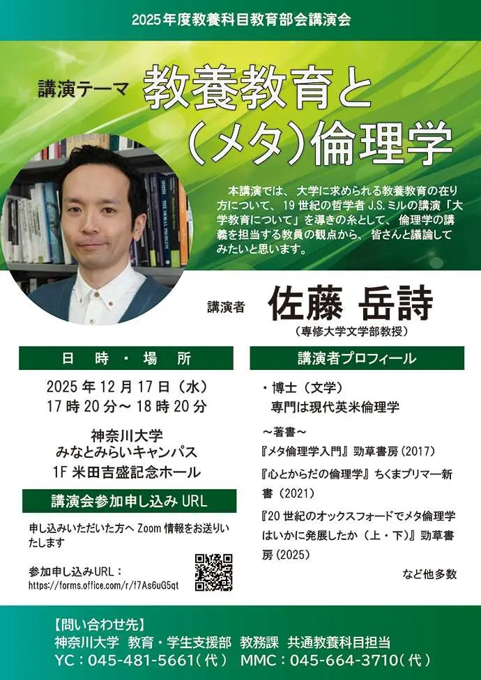 2025年度教養科目教育部会講演会「教養教育と(メタ)倫理学」