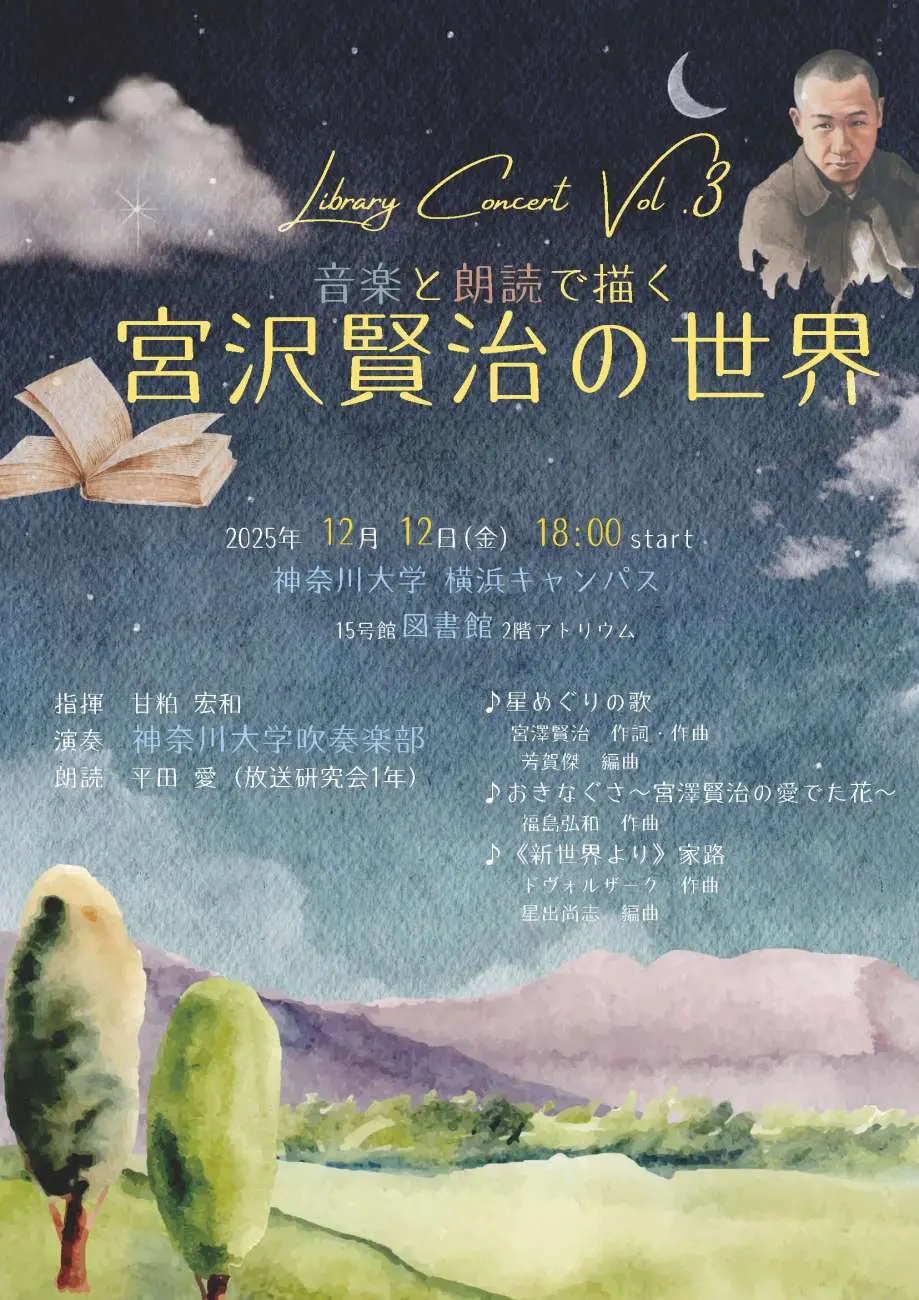 | プログラム | 【テーマ】 音楽と朗読で描く宮沢賢治の世界