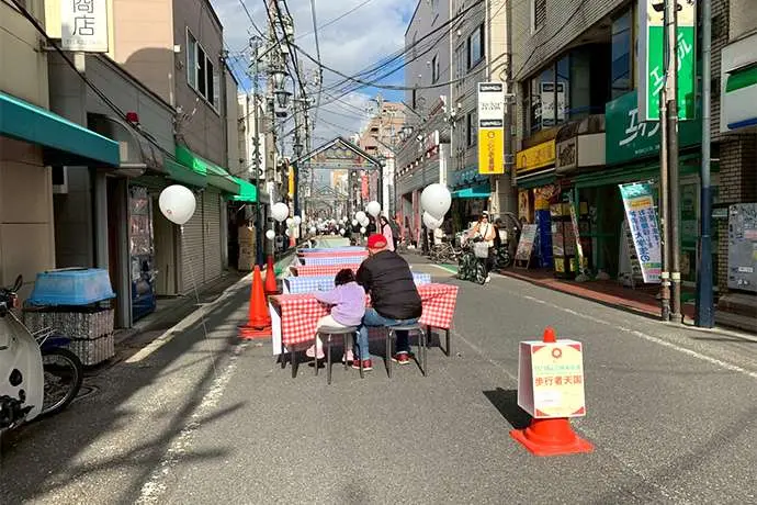当日は大きな混乱はなく、多くの人がゆったりと商店街を歩き、また、飲食を楽しむ様子が見られるなど、新たな風景が創出されました。