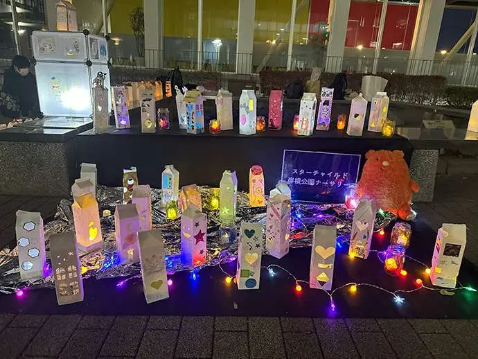 キャンドルナイトは、牛乳パックを再利用して制作したキャンドルホルダーに灯りをともす地域連携イベントで、今回で8回目の開催となります。