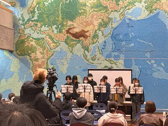 当日は一斉点灯に加え、人間科学部・麻生ゼミによるハンドベル演奏や読み聞かせ劇、神奈川大学管弦楽団およびマンドリンアンサンブルによるミニコンサートなど、学生による多彩なプログラムも実施。夜に色づく紅葉の下で音楽と灯りが重なり、会場には多くの笑顔があふれました。