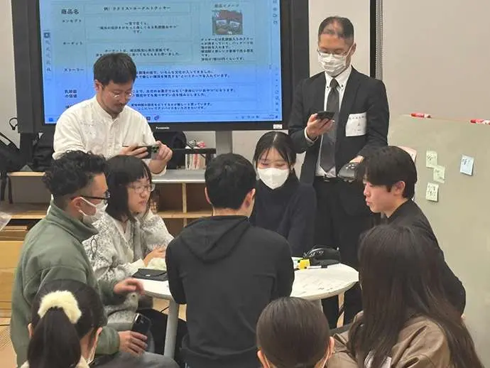 ワークショップ後半では、各チームがアイデアを発表し、参加者同士でブラッシュアップを行いました。実際の商品化を視野に、味・ストーリー・ターゲット層などの観点から意見交換が行われ、学生らしい視点によるユニークな提案が多数共有されました。講評として、株式会社ありあけをはじめとした企業にお越し頂き、より実装に繋がるようにコメントを頂きました。