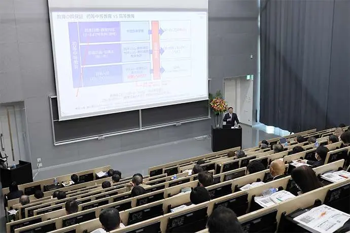 その後開催された「第19回神奈川大学高大連携協議会フォーラム」では、【持続可能な未来に向けてvol.5-高校と大学をつなぐ“学び”の現在地-】をテーマに、株式会社進研アド 改革支援本部 本部長 高坂 栄一氏による講演がなされました。高等学校や大学などから110名を超える教育関係者が参加し、高等学校と大学の垣根を越えた教育の在り方や連携の課題について、先進的な実践や制度的視点を交えた講演を聴講しました。講演終了後に行われた質疑応答では参加者から多くの質問が寄せられ、それぞれの立場を超えて現状や課題について理解を深める貴重な機会となりました。