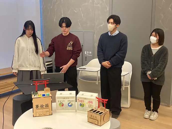 この度の分別回収の取り組みについて、同キャンパスの施設管理を担当するみなとみらい総務課職員に向けて報告し、同職員からは「単に回収箱を置くだけでなく、施設利用者への啓発に繋がるアイデアであることが素晴らしい」「回収に適する場所とそうでない場所を学生の行動を分析して戦略的に設置しており、自分たちでは気づけなかったことがあった」「大学という場だからこそ、学生のアイデアでこうした循環型の取り組みを推進できることはとても意義があること」との声があがりました。