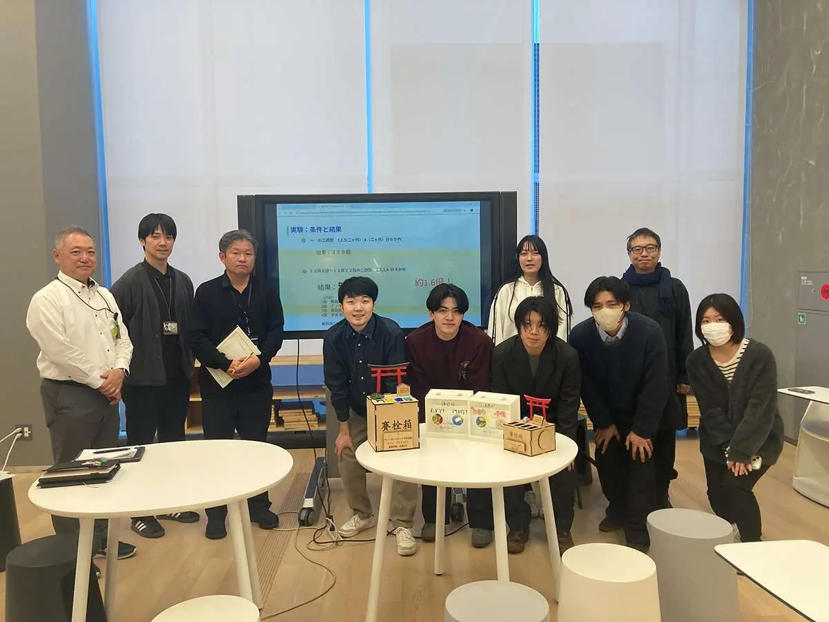 道用ゼミの学生は「多くの人はそのままキャップを外さずにペットボトル回収箱に入れてしまう。そこに分別という手間をかけてもらうモチベーションをどう置くか、実際に行動を起こしてもらうために何を工夫すればよいか考えるのが難しかった」「分別をしたらどうなるのか、具体的に効果がわかるような仕組みも検討した。日常の行動により学びに繋がるような形になれば」「BOXに入れて終わりではなく、BOXに入ったキャップを清掃員さんが取り出しやすいように何度も修正を加えた」「思いがけず、外国人留学生との交流にもつながった」などの声があがり、様々な気づきがあったことが伺えました。