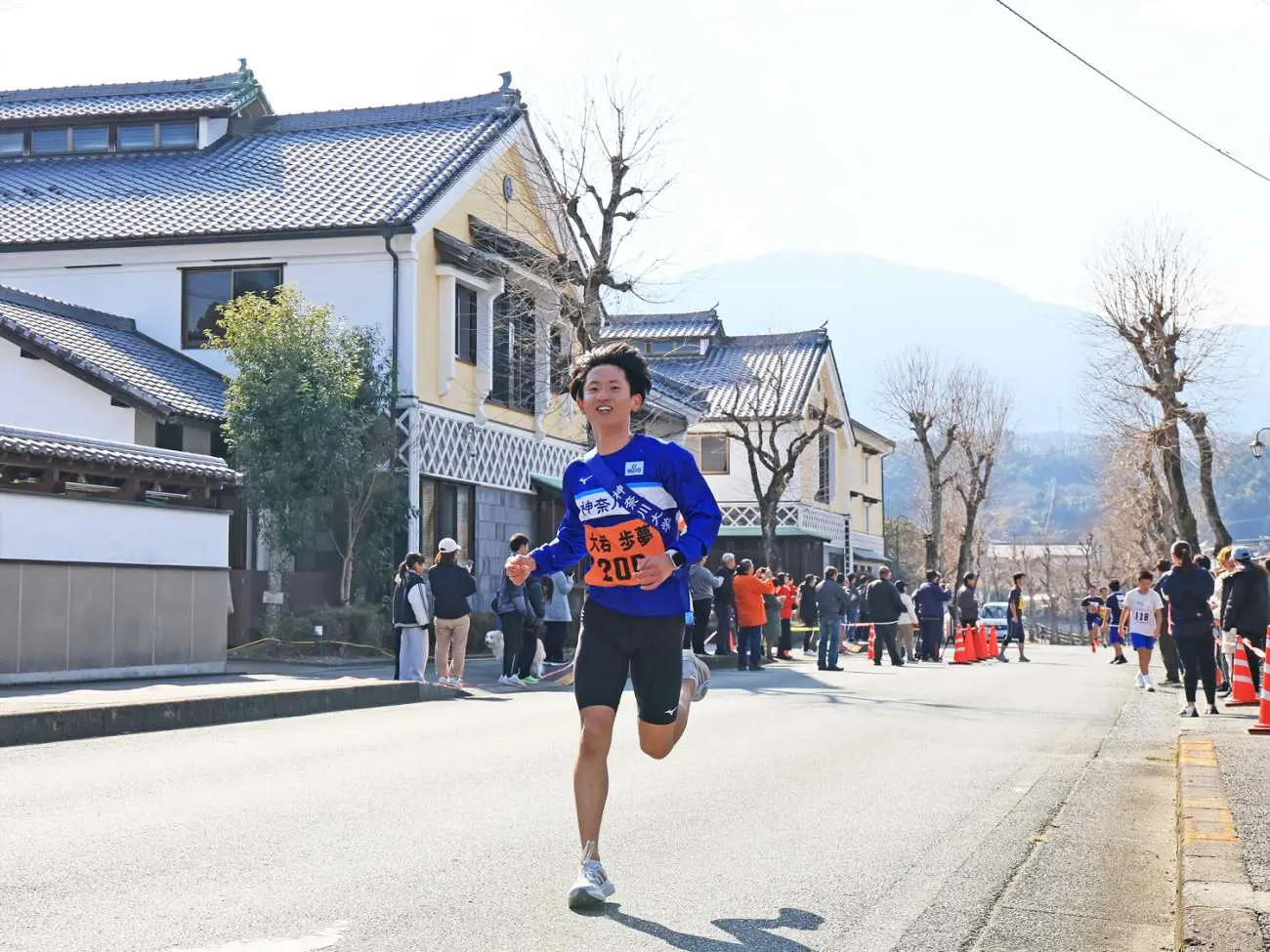 駅伝チームコーチの大岩歩夢さんが本学創立者生誕の地・内子町を駆け抜けました