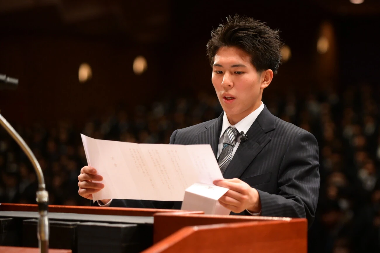 私たち新入生一同は、神奈川大学の理念を胸に、学業と課外活動に 意欲的に取り組み、文武両道を実践してまいります。