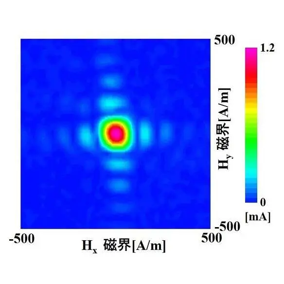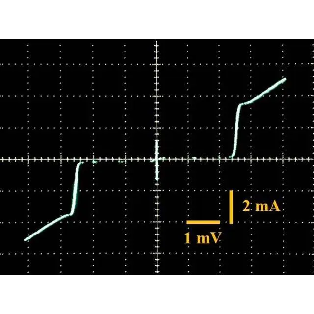 また、絶対零度に近い極低温で、超伝導の性質を示すニオビウム金属を用いたサンドイッチ構造の電子デバイスの開発にも取り組んでいます。サンドイッチの2枚のパンにあたる部分が超伝導体で、具にあたる部分は薄い酸化膜です。この超伝導素子に多方向から磁界を加え、超伝導電流の最大値が変化する様子を調べています。