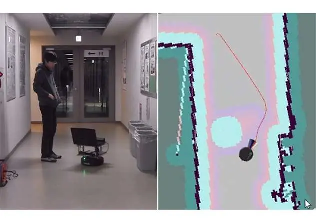 私は、人間と共存できるサービスロボットを作ることを目指し、研究を行っています。例えば、ロボットに冷蔵庫の中にある水を持って来てもらうとします。そのために必要なのは、ロボットが冷蔵庫の位置と経路を把握するための「地図」です。そこで、センサーで周囲の状況をそのまま読み取らせて、部屋の地図を作成します。もし冷蔵庫までの経路に机などの障害物があっても、この地図に反映されていれば、ロボットはそこを避けて動くことができます。今の技術で達成されているのは、この段階までです。