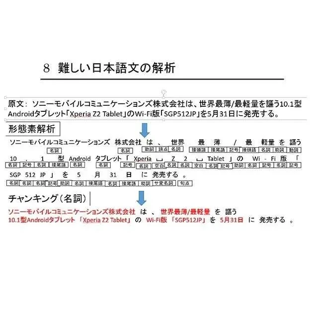 「自然言語解析」が研究室の主要テーマです。”Siri”(Apple)、「しゃべってコンシェル」(NTTドコモ) スマートフォン向けのアプリ、”GoogleHome”(Google)、”ClovaWAVE”(LINE)などのスマートスピーカなどの人工知能応用のサービスにおいて、自然言語解析は重要な研究として位置づけられています。一般利用者が上記サービスで使用するのは会話文であり、日常的な言葉・短い文が使われ、文の構造としては単純です。一方、学術論文、技術報告書、特許などは専門用語が多く、非常に複雑な文から構成されています。当研究室はこのような文を対象に、人間と同レベルの解析精度を有する日本語自然言語解析システムの研究をしています。