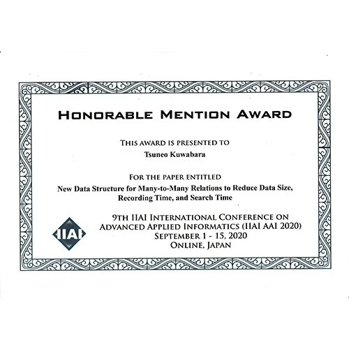 また最近、データベースの効率的な構造について着想を得、神奈川⼤学名義で特許(日本国特許および米国特許)を取得しました。